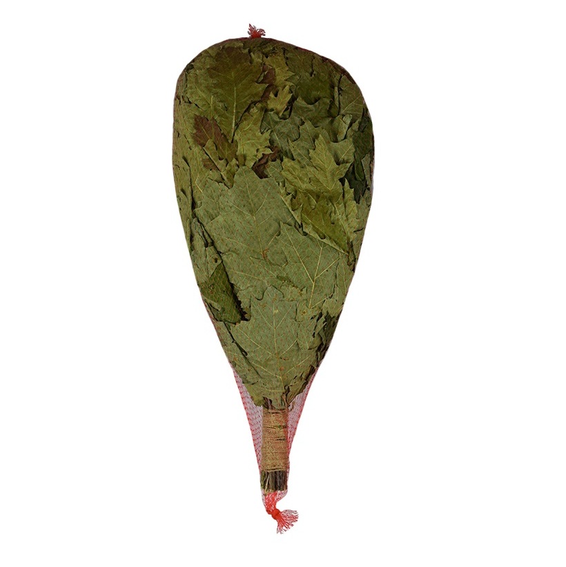 Oak bath brooms are more suitable for people with oily skin, as they help to dry the skin and make it firmer. They have a strong anti-inflammatory effect. The oak aroma prevents blood pressure from rising too much in the sauna. Oak leaves contain large amounts of tannin. An oak infusion can be used as a remedy for certain skin diseases and sweating feet. It calms the nervous system after physical and mental exercise.